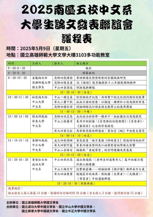 2024 南區五校中文系大學生論文發表聯誼會 |